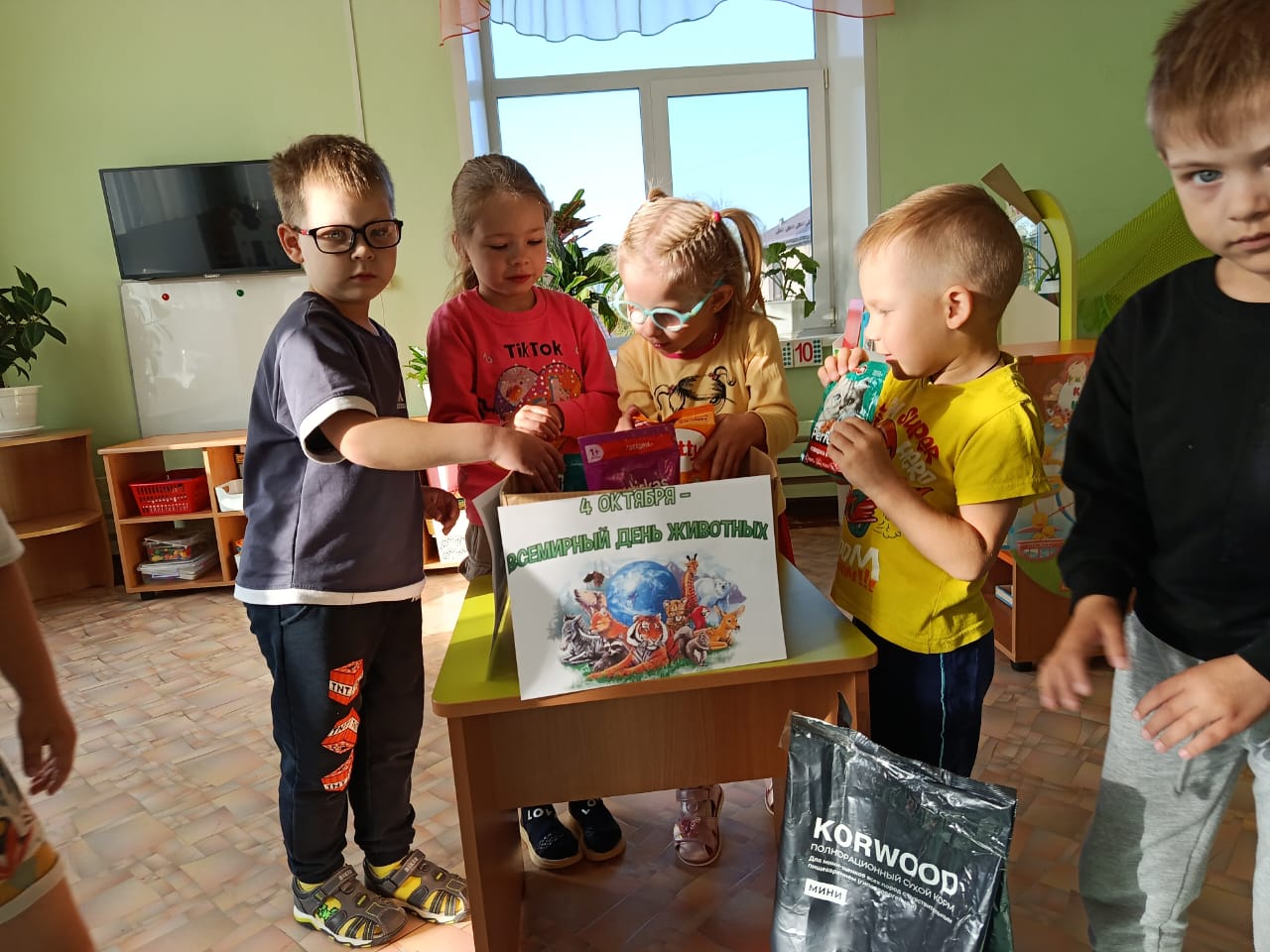 4 октября дети детского сада приняли участие в мероприятии, посвященном дню защиты животных. Ребята с огромным увлечением собирали корм для бездомных животных, проявив заботу и внимание к животным, которые нуждаются в помощи.Собранный корм был отправлен в пункт кратковременного содержания бездомных животных, где компания волонтеров заботится о тех, кто потерял свой дом и нуждается во внимании и заботе. Дети с восторгом отнеслись к возможности помочь животным и участвовать в таком добром и важном деле. Это мероприятие стало для малышей отличной возможностью не только позаботиться о животных, но и научиться сочувствовать кому-то, кто находится в более сложной ситуации. Дети с удовольствием участвовали в сборе корма и радостно отвезли его в пункт кратковременного содержания бездомных животных.Такие акции не только дарят радость и удовлетворение детям, но и обучают их важным ценностям – заботе о животных и помощи тем, кто нуждается в помощи. Надеемся, что подобные мероприятия станут традицией и будут приносить радость и пользу как детям, так и животным.